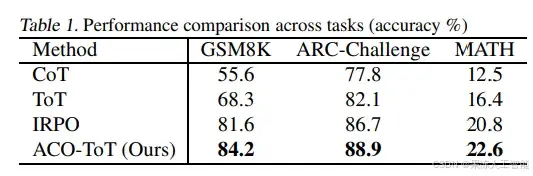 “我们提出 ACO 引导的思维树(ACO-ToT),这是一种新算法,它结合了 ToT 的探索能力和 ACO 的集体智能,以发现最优的推理路径。”——来源