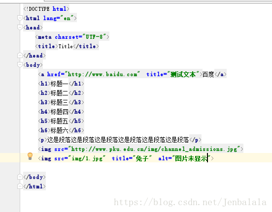4.<img>标签引入图片。*title当鼠标放入其上时会有文本提示。