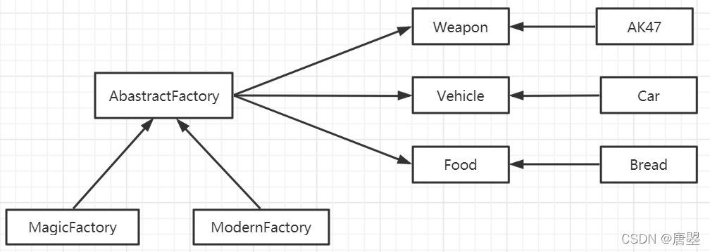 抽象工厂模式是对工厂方法模式的进一步深化。在工厂方法模式中,工厂仅可创建一种对象;然而,在抽象工厂模式中,工厂不仅可创建一种对象,还可创建一组对象。