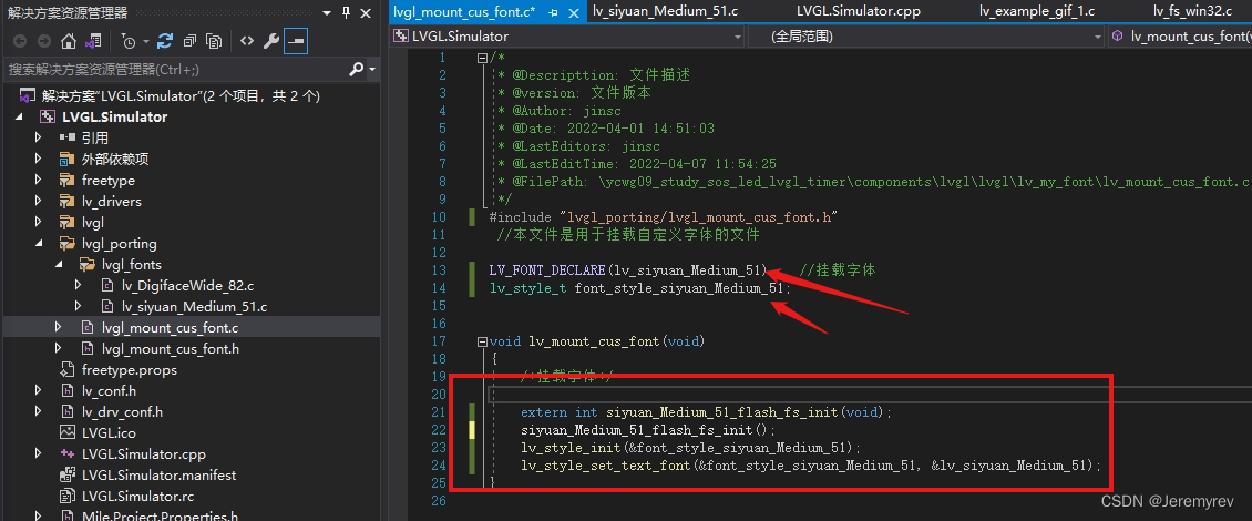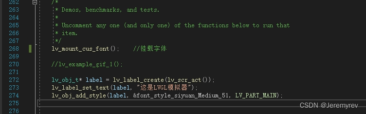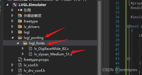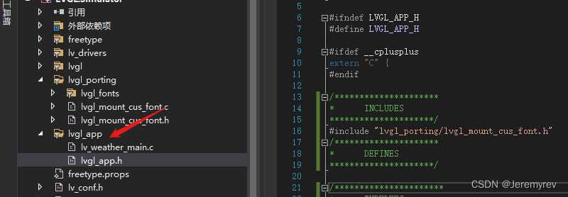 在LVGL.Simulator.cpp文件中,先包含#include "lvgl_porting/lvgl_mount_cus_font.h"头文件