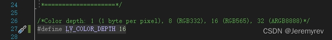 在lv_conf文件内,将模拟器色深配置为16位