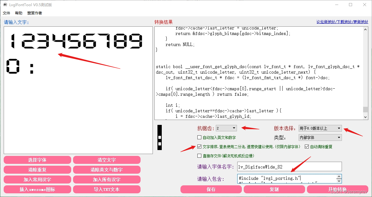 输入要生成的部分字库内容 包含这个头文件