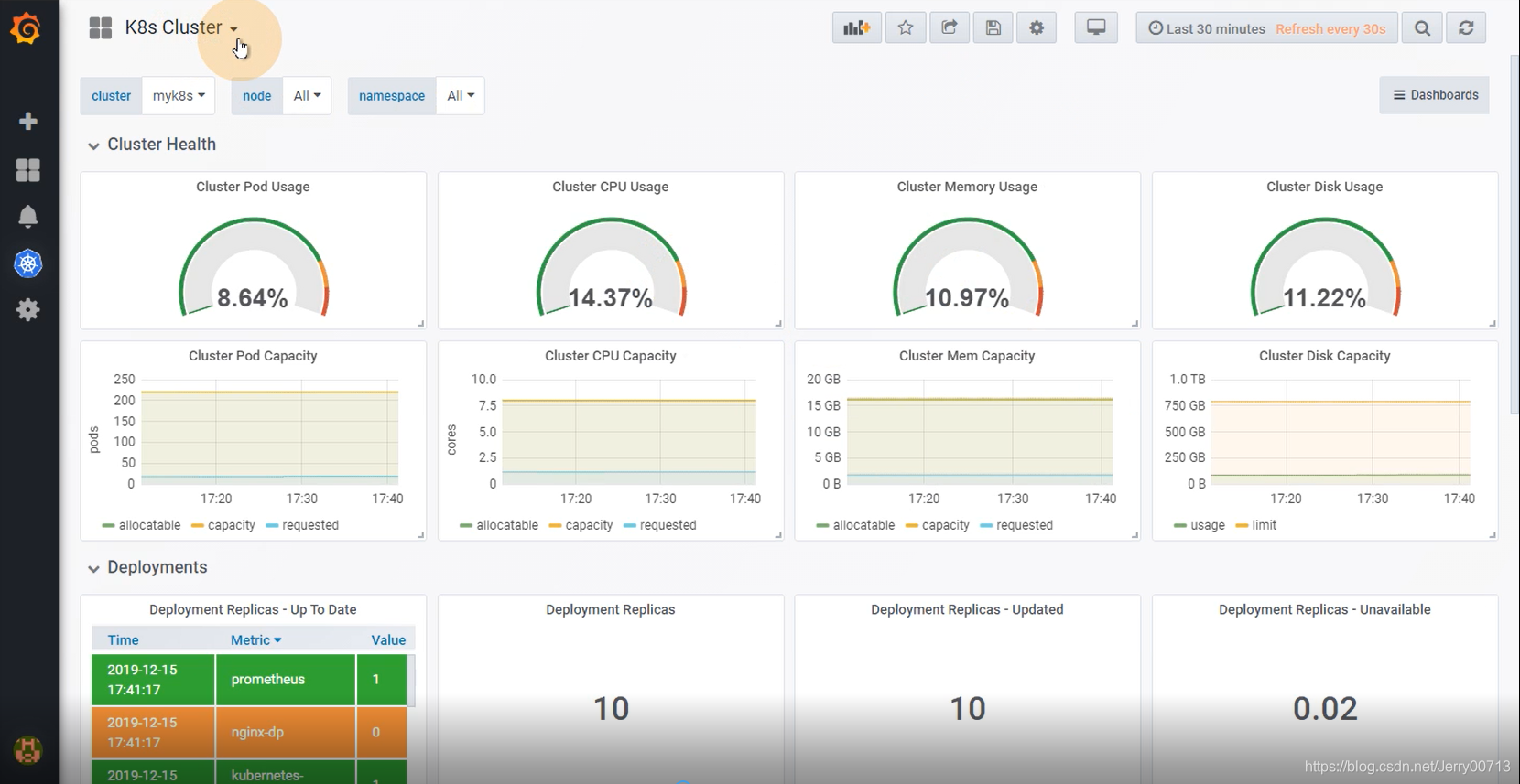 kube-state-metrics用来收集k8s状态信息,或者收集基本状态信息的一个监控代理。比如k8s中有多少个节点,每个节点有多少个deployment,deployment更新过多少版等等,具体的如下