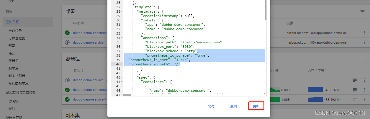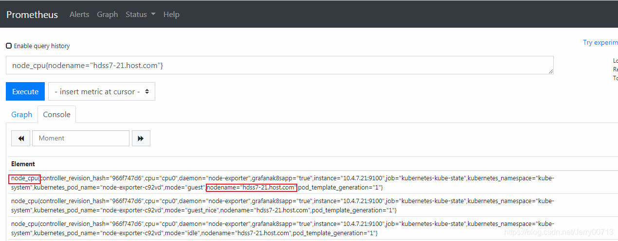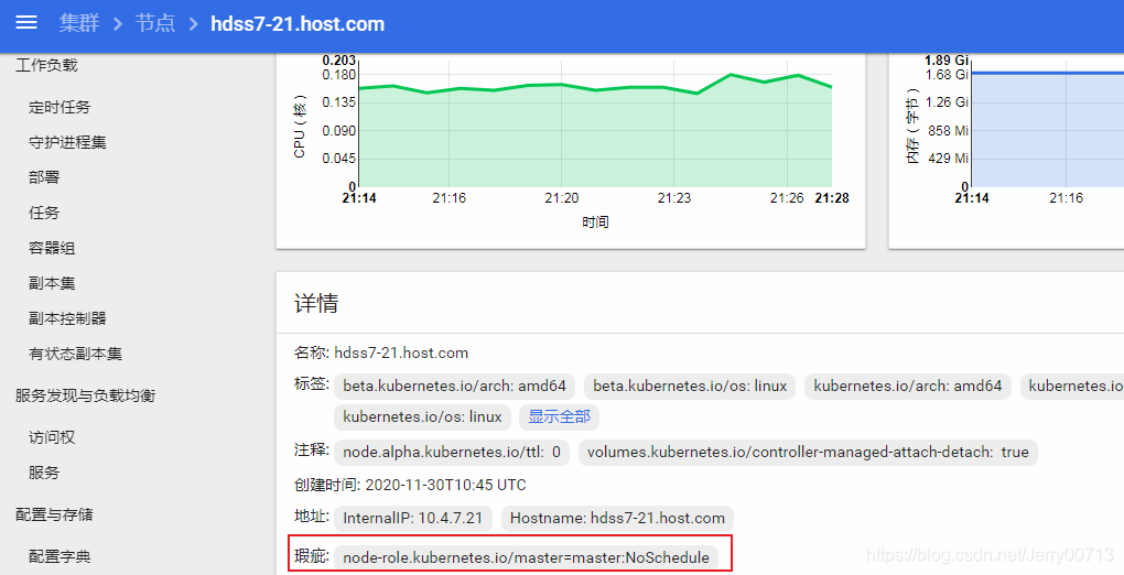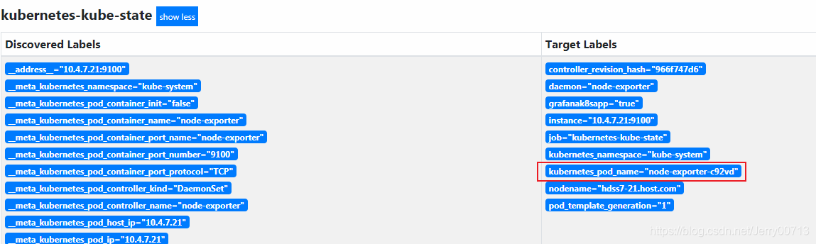 然后重启promenteus,但是生产环境下不要删除promenteus的pod,因为太大,启动时间太长,还容易给集群拖垮。查看promenteus的pod部署在那个node,之前我们配置promenteus运行在hdss7-21上,所以找到promenteus的pid,由于promenteus支持配置文件修改后,平滑加载。然后kill -SIGHUP 就实现平滑加载。其中SIGHUP传递信号
