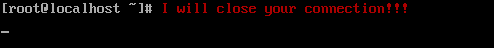 [root@localhost ~]# echo -e '\033[31mI will close your connection!!!\033[0m' >/dev/pts/1