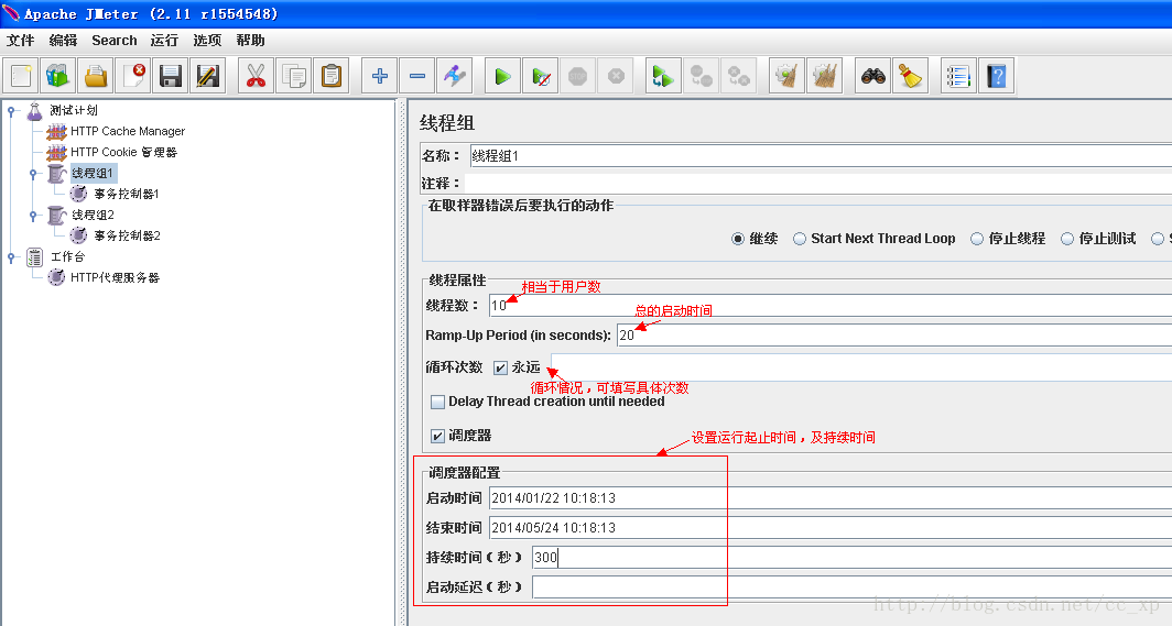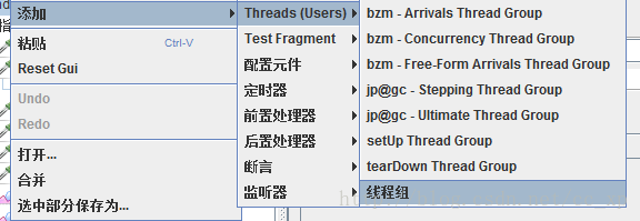 新建测试计划(步骤省略)后,选择添加线程组,进入线程组设置页面,其中线程数代表用户数,Ramp-Up Period表示线程组周期,循环次数表示执行具体次数。