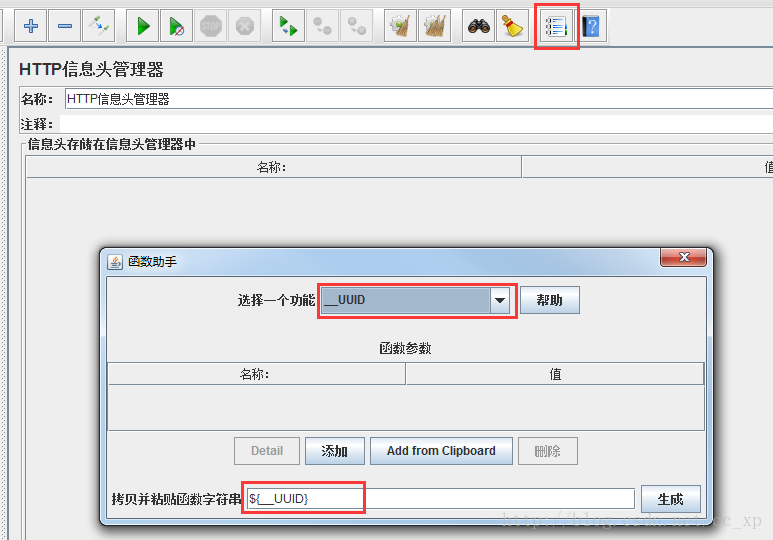 通过函数助手的方式可以引入随机参数,点击函数助手,在下拉选项中选择_UUID,设置相应的参数,复制粘贴生成的表达式即可使用。通过函数助手也可以引入其他基本的函数,方便测试的进行。