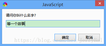 alert()方法和confirm()方法的使用十分类似,都是仅仅显示已有的信息,但用户不能输入自己的信息,但是prompt()可以做到这点,她不但可以显示信息,而且还提供了一个文本框要求用户使用键盘输入自己的信息,同时她还包含“确认”或“取消”两个按钮,如果用户“确认”按钮,则prompt()方法返回用户在文本框中输入的内容(是字符串类型)或者初始值(如果用户没有输入信息);如果用户单击“取消”按钮,则prompt()方法返回null,我们称这种对话框为提示框,在这三种对话框中,她的交互性最好。