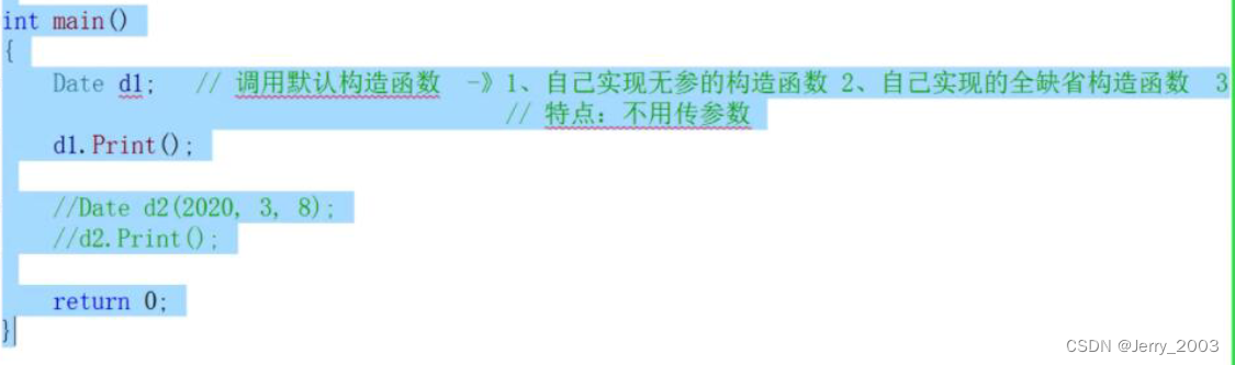 Date(int year = 0, int month = 1, int day = 1) //构造函数
