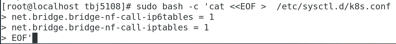 sudo bash -c ‘cat < /etc/sysctl.d/k8s.conf