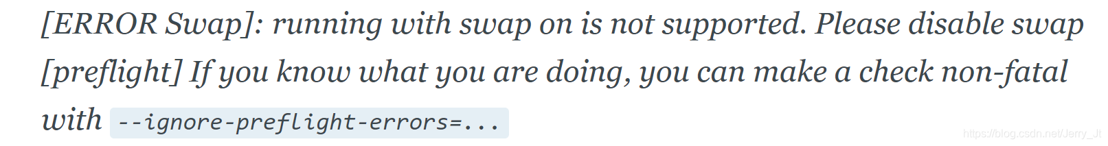 这个时候会遇到错误:running with swap on is not supported. Please disable swap