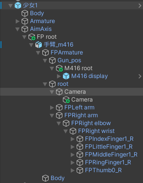 在人物对象下挂载超过2层非骨骼子对象导致AnimationRigging不工作