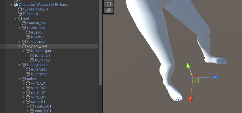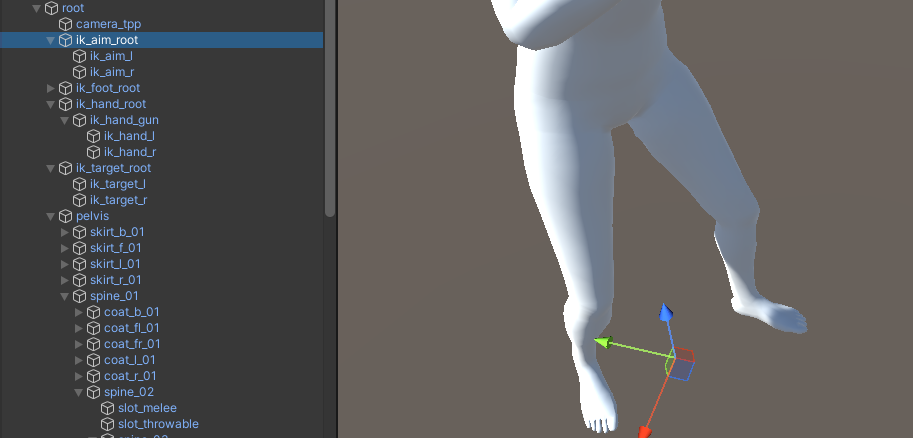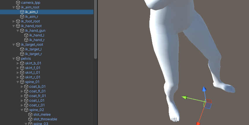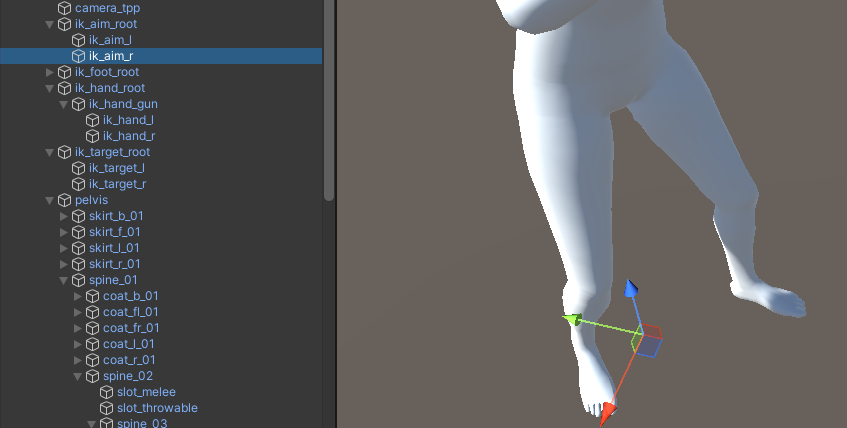 ik_aim和下面的左右子对象在人物脚下。尚不清除这一套ik的作用。