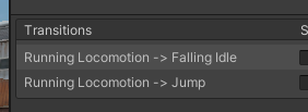 移动到跳跃有两种转换,分别对应跳跃和坠落。