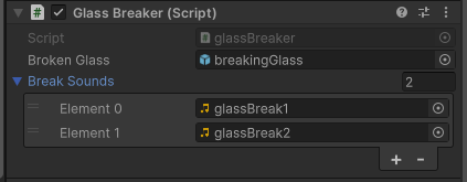 在玻璃上挂了脚本,记录了破碎后的预制体和破碎声音,破碎时: