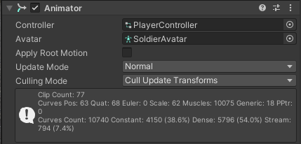 3.令人匪夷所思的有一个bool hasAnimator,好像在应对animator不一定存在的情况,更匪夷所思的是每一帧都在判断hasAnimator,好像animator随时会被删除;