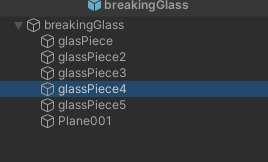 - 实例化碎玻璃预制体,作为玻璃的子对象;