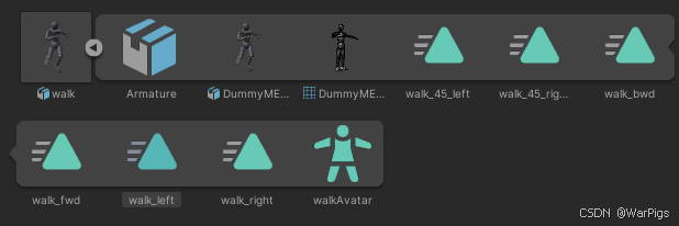 5.是。看fbx里的骨架名字,用了一些Mixamo的动画。步枪走路的动画不是Mixamo的,且只有6个方向,右前和左后走路是二维混合树自己混合的。