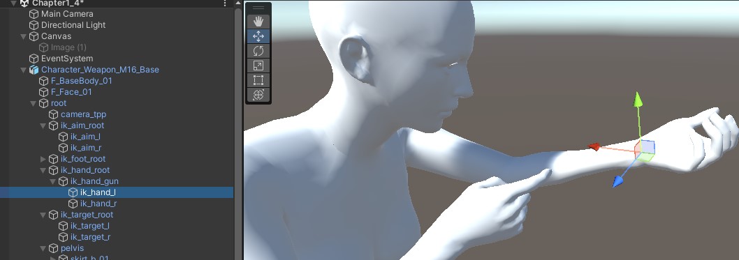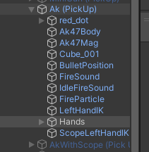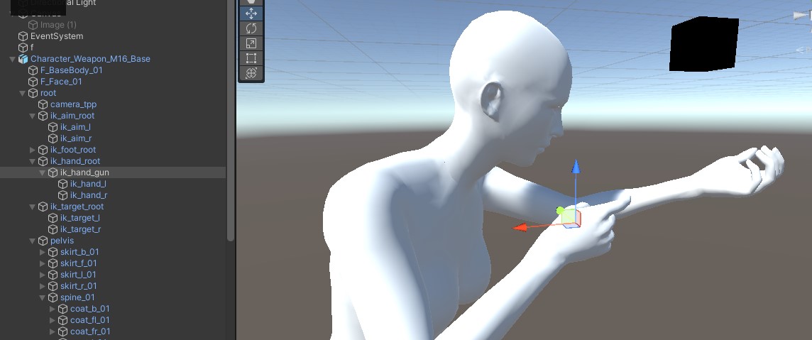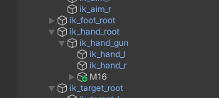 2.枪绑定在右手上,左手通过IK绑定在枪上。所有枪绑定在右手上,使用哪把枪就激活哪把。