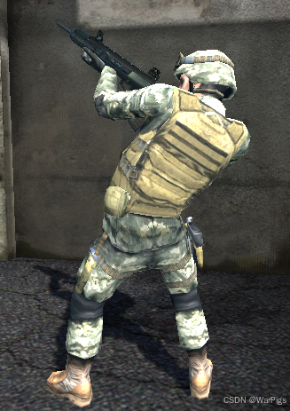 3.改变瞄准仰角是通过旋转手臂,第三人称动作能达到的仰角范围小于实际的仰角范围,动画只是显示人物动作,并不负责发射子弹;