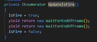 里面的协程函数。打开IsFire,2帧之后关闭,但是每帧停止再开启协程就是一直打开,直到松开2帧后关闭。