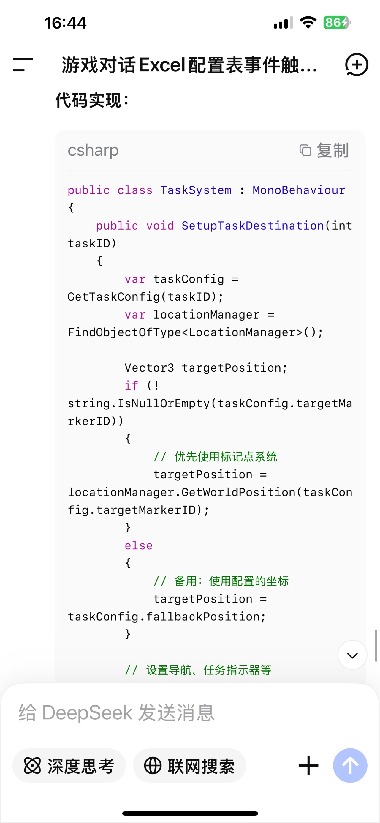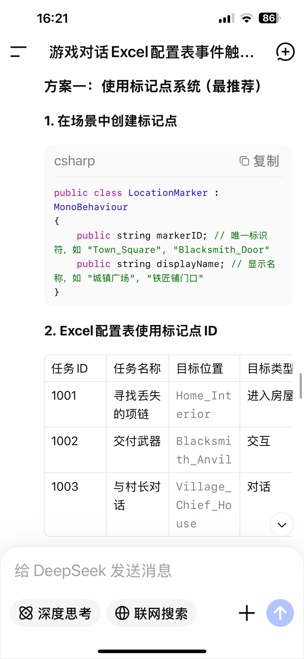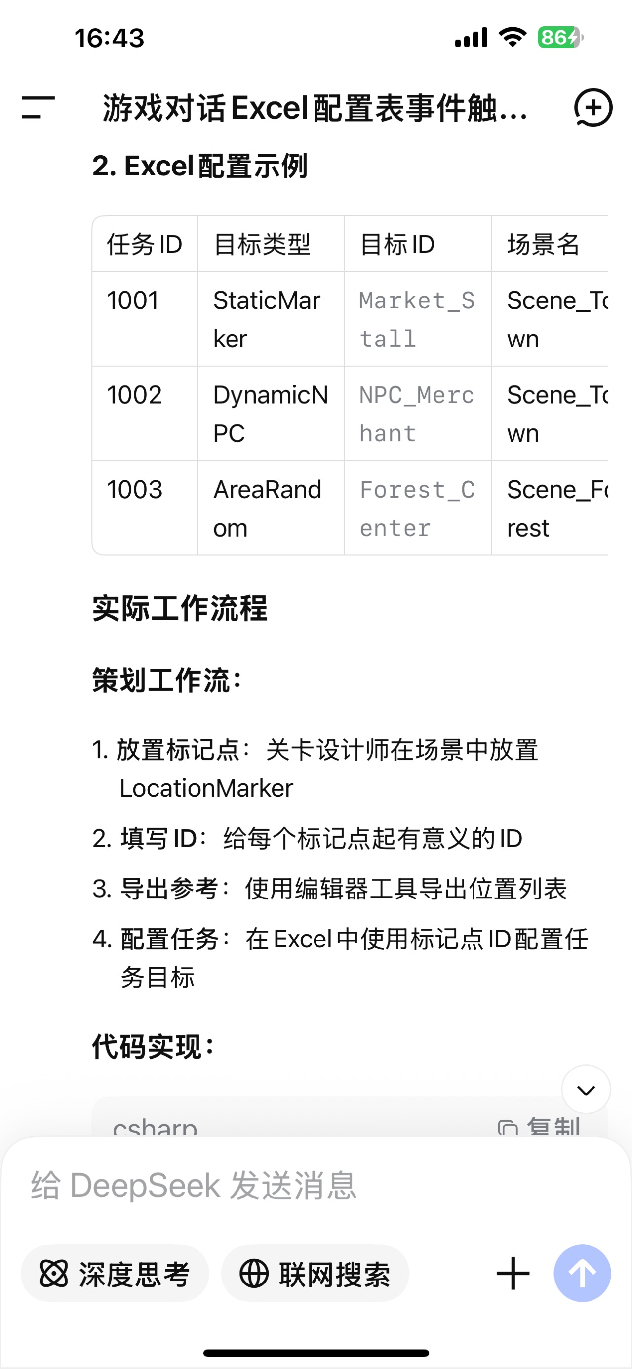 任务的有一些成员是和场景分不开的,包括目的地位置、要注入对话的NPC、各种回调。配表里适合记录一些简单类型数据,任务名称、任务描述等。