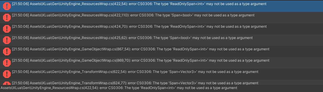 创建运行环境报错xlua assembly:<unknown assembly> type:<unknown type> member:(null)