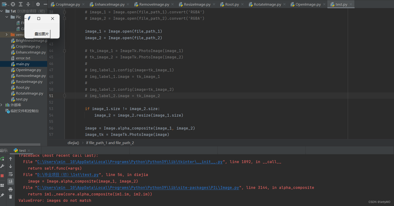 这段时间我一直在尝试对多图层图片进行一个叠加的操作,想用tkinter实现出来,先看错误