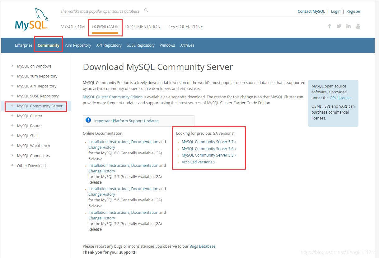 下载地址:https://dev.mysql.com/downloads/mysql/