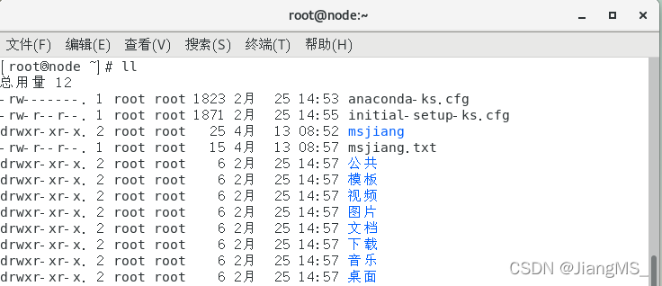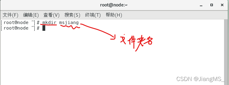 新建一个文件夹:输入——mkdir+目录名(中间有一个空格)。