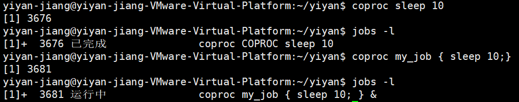 协程命令:coproc可以同时做两件事。它在后台生成一个子shell,并在这个子shell中执行命令coproc命令给进程起的默认名字为COPROC通过使用扩展语法,可以修改协程的名字。