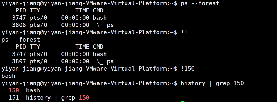 输入!命令编号,然后按回车键就能够唤出history中对应编号的命令。