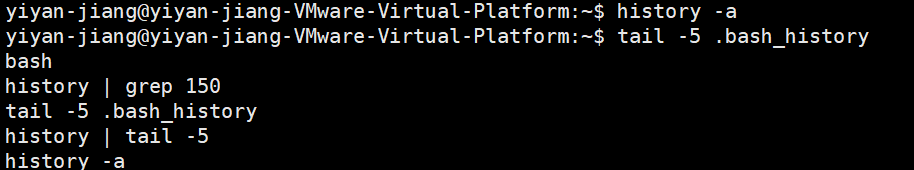 bash命令的历史记录是先存放在内存中,当shell退出时才被写入到历史文件中。