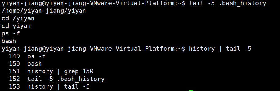 我们可以直接用tail命令查看.bash_history文件和history命令二者的区别。