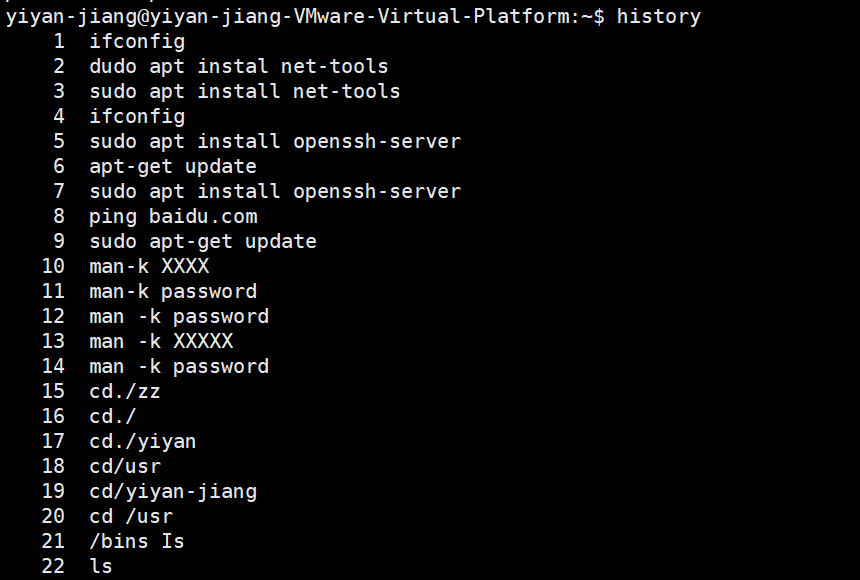 命令历史记录被保存在隐藏文件.bash_history中,它位于用户的主目录中。这里要注意的是,
