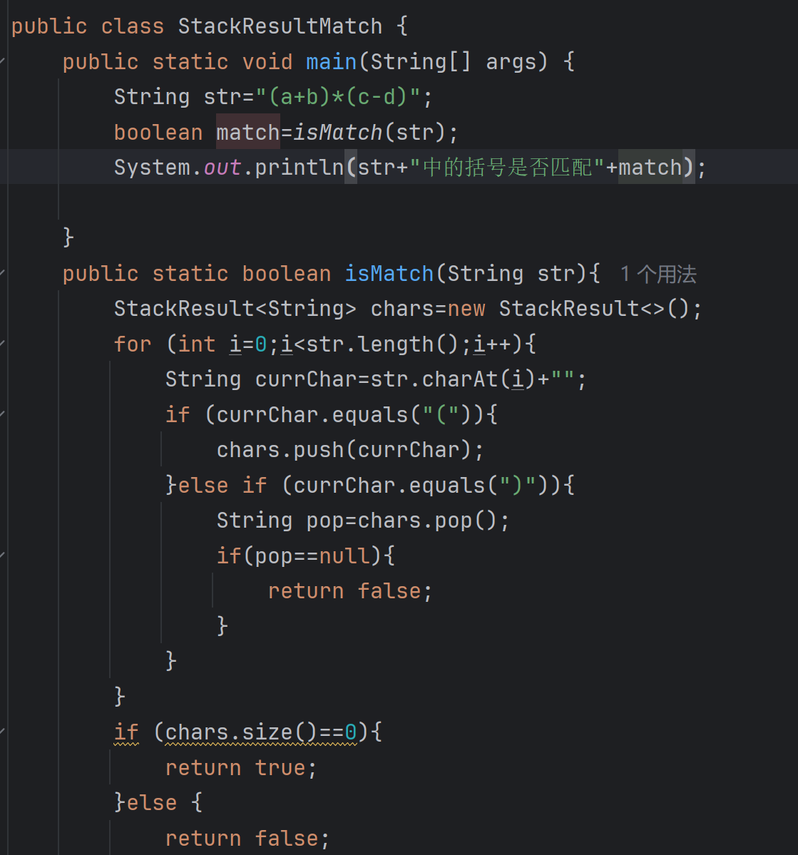 7.循环结束后,判断栈中还有没有剩余的左括号,如果有,则不匹配,如果没有,则匹配.