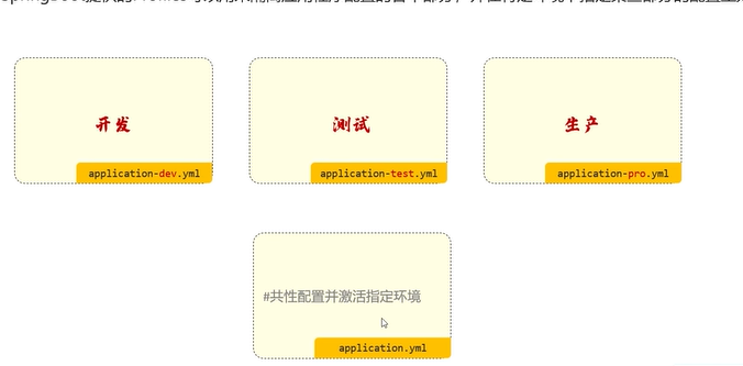 在不同的配置文件中书写相对应的配置信息,在application.yml文件中使用spring.profile.active指定生效文件。