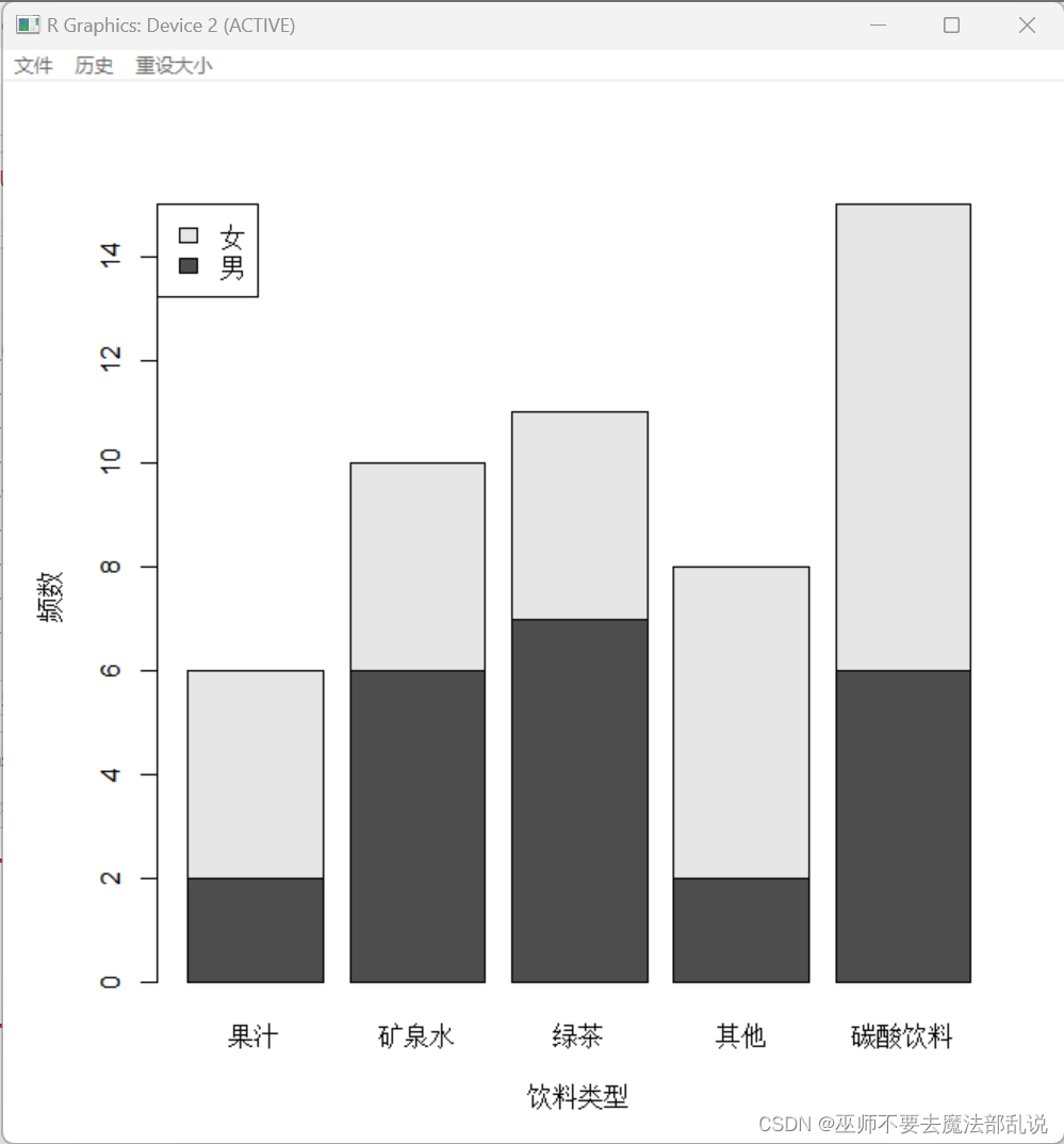 xlab="饮料类型",ylab="频数")
