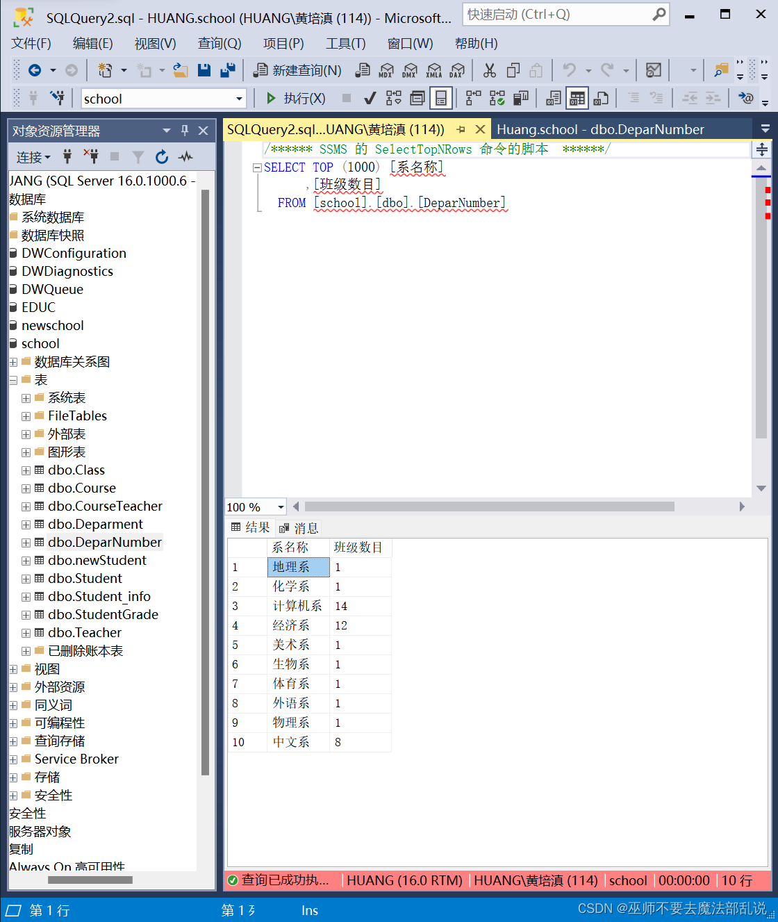 4.统计各系开设班级的数目(系名称、班级数目),并创建结果表。(需考虑没有班级的系)