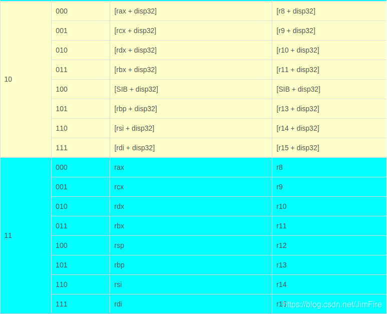 | 10 | [base+disp32] | 提供[base+disp32]形式的memory寻址 |