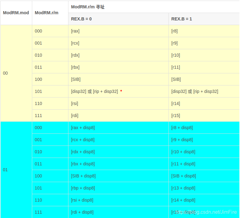 mod模式寻址表