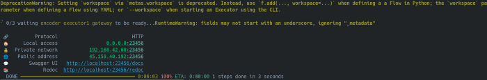 要启动索引 Flow,需要在终端中运行 app.py。首次运行可能比较慢,因为需要从 Jina Hub 下载 Executor,并处理这些数据。