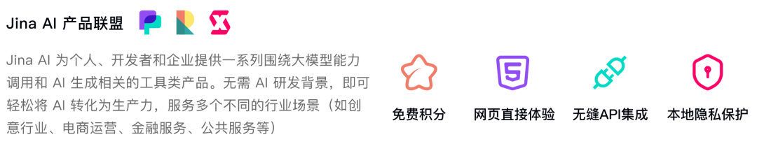 Jina AI 作为本次大赛的「技术合作伙伴」,为所有线下参赛队伍提供了三款 AIGC 产品 API 免费调用的特别福利,buff 拉满、装备升级!