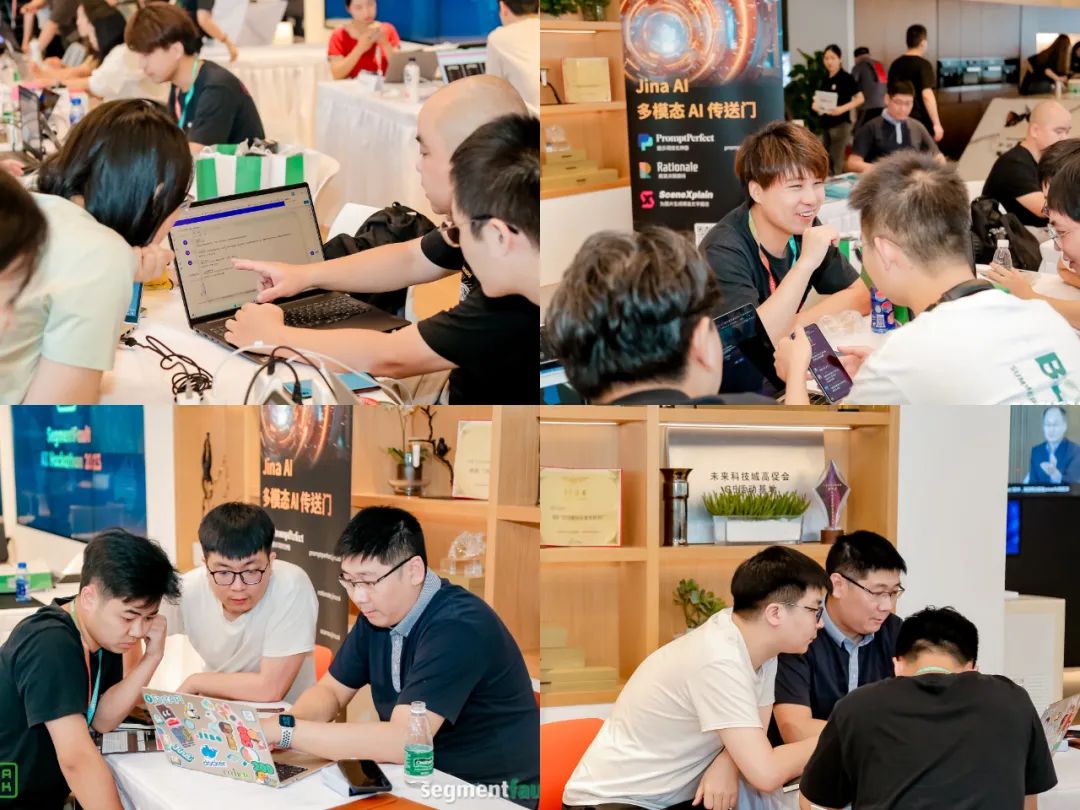 随后,选手们便开始了为期 2 天 1 夜的极限编程挑战。Jina AI 积极地为选手们提供保障,肖涵博士亲自下场帮助选手答疑解惑,工程师远程在北京为选手技术支持。