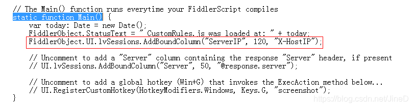FiddlerObject.UI.lvSessions.AddBoundColumn("ServerIP", 120, "X-HostIP"); |