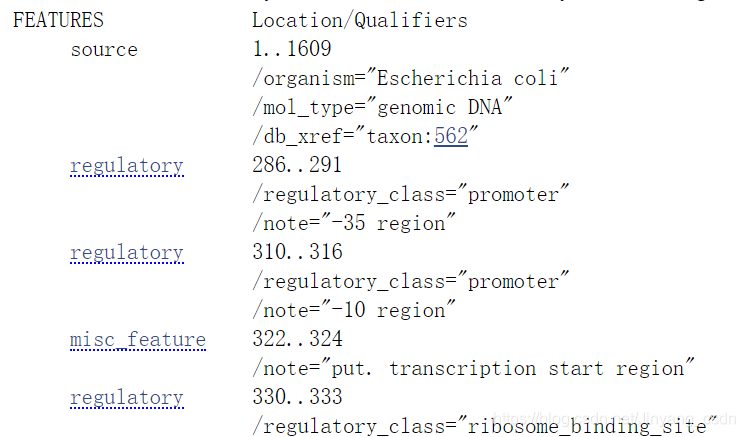 - misc_feature:列出杂项区域,transcription start region 未证实的转录起始位置