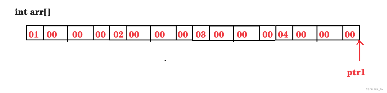 分析ptr1的位置,因为&a表示整个数组的地址,整个数组的地址加1,表示跳过整个数组。则ptr1指向的位置如图。