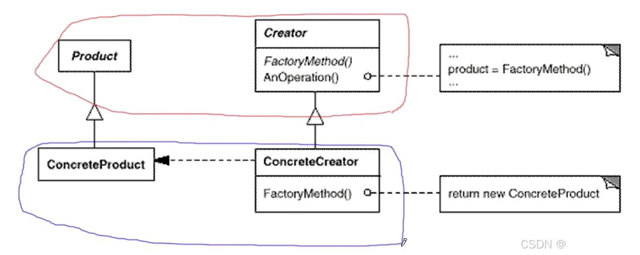 Factory Method模式通过面向对象的手法,将所要创建的具体对象工作延迟到子类,从而实现一种扩展(而非更改)的策略,较好地解决了这种紧耦合关系