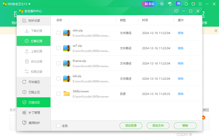 建议直接将自己的目录设置为白名单,否则会出现各种诡异问题。。。