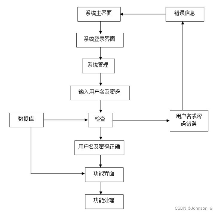 分析程序的流程,涉及到程序的整体操作流程,通过分析与设计,绘制的程序操作流程图见下图。此程序为了确保安全,会让使用者通过登录模块验证信息,符合要求的使用者才有权限操作程序。